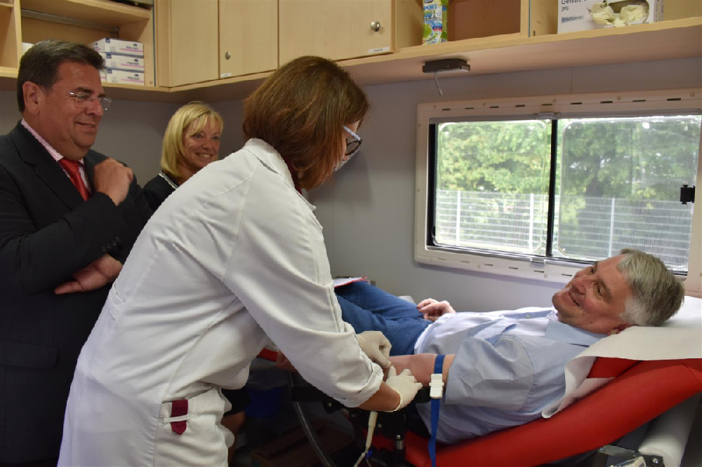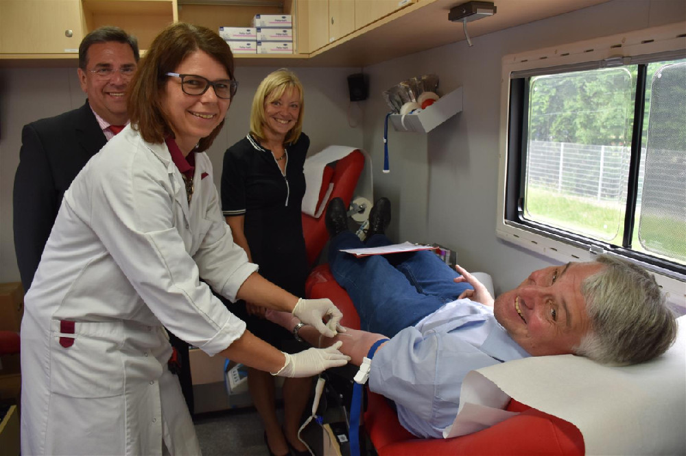 Um auf die Wichtigkeit von Blutspenden gerade während der Sommerzeit hinzuweisen, hat die Kreiswasserwacht Augsburg-Land in Bobingen zu einem zusätzlichen Blutspendetermin eingeladen. Im Blutspendetruck gingen am 2. Juni 2017 auch einige Politiker mit gutem Beispiel voran.