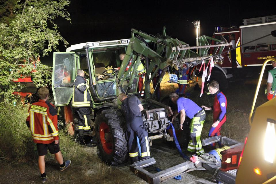 Am Donnerstag, den 13. August 2015, wurde unsere Einsatzgruppe zu einem Einsatz in Hurlach alarmiert. Beim Versuch Wasser aus dem Lech zu pumpen, ist der Traktor eines 23-Jährigen im Fluss versunken. Offensichtlich unterschätzte der Fahrer das Gewicht des Wassers. Das Gespann rutschte rückwärts in den Lech und konnte nur noch mit Hilfe von Tauchern der Wasserwacht aus sieben Metern Tiefe geborgen werden.
